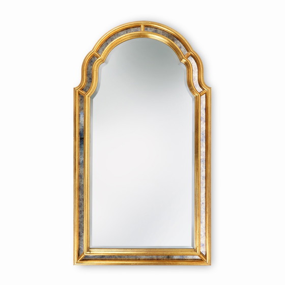 Mit seinen großzügigen Ausmaßen und seinem goldenen Glanz ist dieser Spiegel der perfekte Blickfang in jedem Raum.