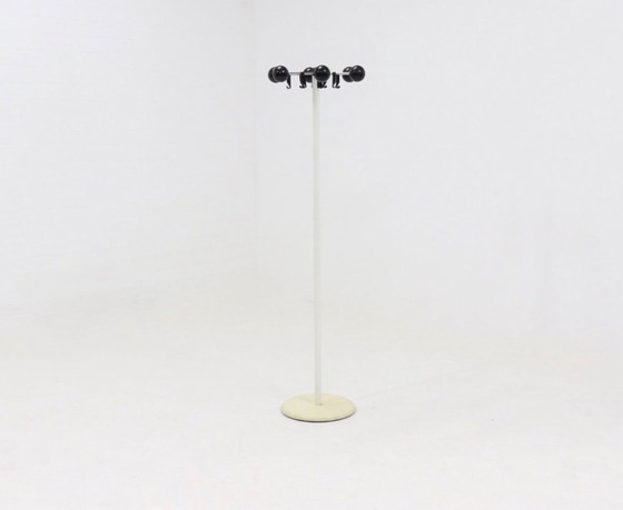 Verschönern Sie Ihren Eingangsbereich mit dieser exquisiten freistehenden Garderobe im Mid-Century-Stil – einer perfekten Kombination aus Form und Funktion. Ihr schlichtes Design mit minimalistischem weißem Ständer und markanten schwarzen Haken verkörpert die Eleganz des Mid-Century-Modern-Stils.