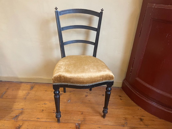 ZustandSehr gutFarbenGold, SchwarzMaterialHolz, StoffAnzahl der Artikel1Höhe82 cmBreite43 cmTiefe40 cmSitzhöhe44 cm
