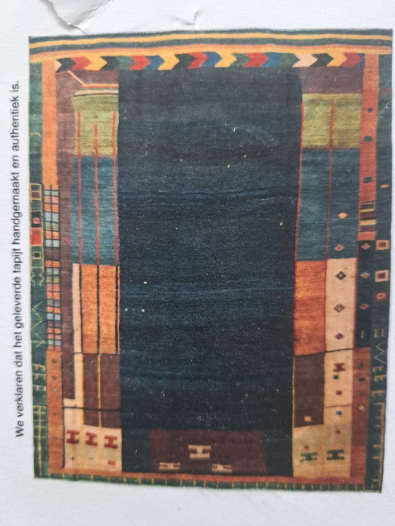 Dieser einzigartige Gabbeh-Teppich ist aus handgesponnener Wolle handgeknüpft.