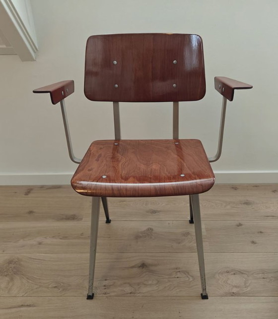 Galvanitas Stuhl in gutem Zustand, Typ s16 mit Armlehnen und sogenannten Kompassbeinen.