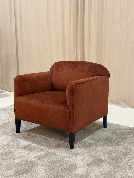 Dieser Gust-Sessel von Moome stammt aus einer älteren Kollektion und besticht durch seinen warmen, rostfarbenen Stoffbezug und die schwarzen Holzbeine. Das Design ist kompakt und zeitlos, mit abgerundeten Armlehnen und einem bequemen Sitz, der sowohl Halt als auch Entspannung bietet. Die satte Farbe verleiht dem Sessel Charakter und macht ihn zu einem markanten Blickfang in modernen wie auch in gemütlichen Interieurs. Der Sessel ist 78 cm breit und 85 cm tief, die Rückenlehnenhöhe beträgt ca. 77 cm. Die Sitzhöhe liegt bei ca. 45 cm und die Sitztiefe bei ca. 54 cm, was eine komfortable und ergonomische Sitzposition gewährleistet. Die Armlehnen sind ca. 64 cm hoch und bieten so zusätzlichen Komfort. Der Gust-Sessel befindet sich in sehr gutem Zustand und wurde als Ausstellungsstück genutzt. Der ursprüngliche Verkaufspreis lag bei 955 €. Dieser Sessel wird jetzt für 475 € angeboten.