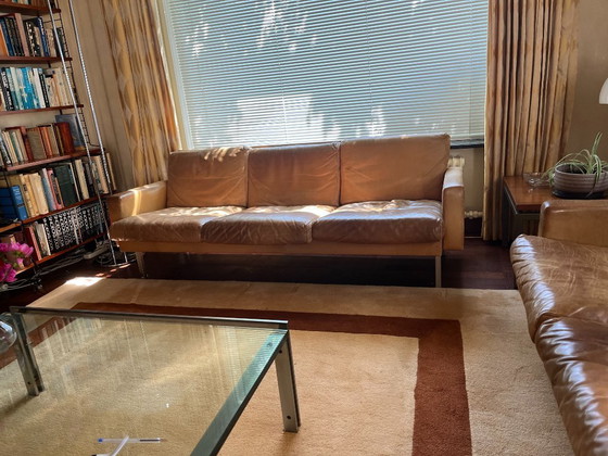 Zwei Gelderland Sofas 3 und 4 Sitze. Die 4-Sitzer 245 cm breit und die 3-Sitzer ist 189 cm breit die Sitzhöhe der beiden Sofas ist 39 cm hoch die Rückseite ist 67 cm hoch. Das Leder ist im Laufe der Jahre verfärbt, aber in gutem Zustand. Die Sofas sitzen noch sehr gut. Sie können auch separat verkauft werden, als ein Satz 400 Euro. Der 3-Sitzer ist 200 Euro und der 4-Sitzer 300 Euro.