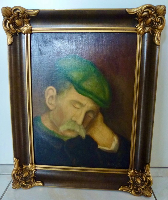 Der Mann mit seiner grünen Mütze und seinem ruhigen Ausdruck strahlt eine zeitlose Schlichtheit aus, die sich perfekt in klassische wie moderne Interieurs einfügt.