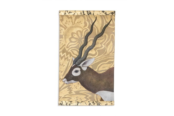 Bemalte Leinwand bzw. dekoratives Panel, das eine braune Gazelle auf einem stilisierten Goldgrund darstellt.