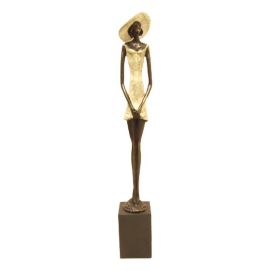 Schöne Statue auf Marmorsockel. Die Statue ist (einschließlich Marmorsockel) 45 cm hoch. Die Statue ist in neuem Zustand. Die Skulptur ist aus einer Zinnlegierung hergestellt und anschließend bronziert. GER VAN TANKEREN (geboren 1937) ist Autodidakt. Als die Nachfrage nach seinen Harzskulpturen nachzulassen begann, ging er dazu über, Skulpturen in einer Zinnlegierung zu gießen, die er anschließend bronzierte. Ger ist bekannt für seine Vielseitigkeit und seinen Blick für Details. Er schuf Bilder, die von sehr realistischen Dingen bis hin zu künstlerischen und religiösen Szenen reichten. Ger blieb bis zu seinem 82. Lebensjahr aktiv und fertigte verschiedene Modelle an, die nicht nur für das Wohnzimmer geeignet sind, sondern auch als Werbegeschenke dienen können und im Büro gut aussehen.