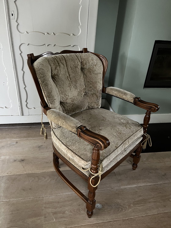 - Der Sessel ist mit aufwändigen Holzarbeiten versehen, die die berühmte Handwerkskunst von Giorgetti unterstreichen und ihn zu einem herausragenden Stück in jedem Raum machen.