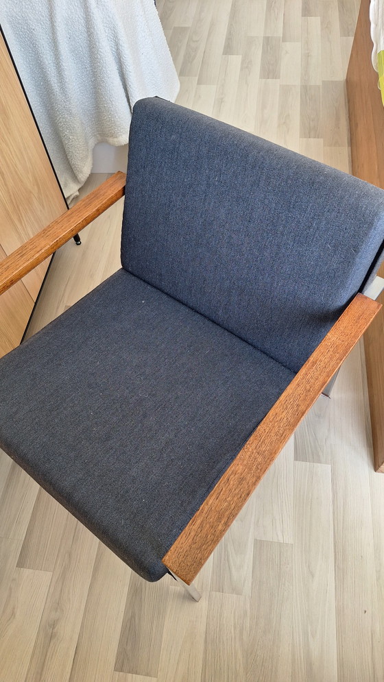 Gispen-Stuhl aus den 1960er-Jahren. Die Polsterung müsste erneuert werden, und das Gestell weist etwas Rost auf. Ansonsten ein schöner Stuhl. Und sehr bequem.