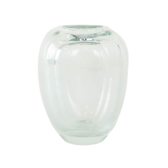 Die handgeformte Vase besticht durch ihre fließende, organische Silhouette. Das Glas zeichnet sich durch wunderschön gerundete Linien und charakteristische optische Lichteffekte im Inneren aus. Die Oberfläche ist matt. Ein seltenes Beispiel dänischen Designs, eine Bereicherung für jede Sammlung skandinavischer Glaskunst.