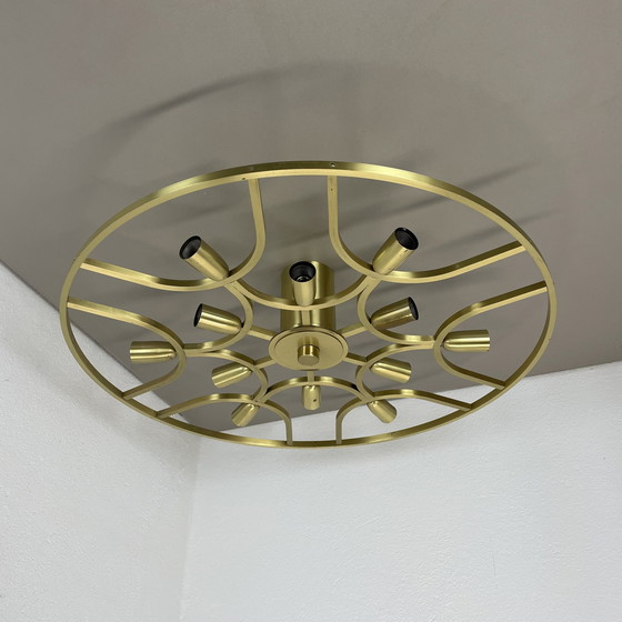 Große 64cm Messing 12 Glühbirnen Stilnovo Style Flush Mount Deckenleuchte, Italien 1960S