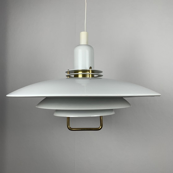 Große dänische Ab Belid Pendelleuchte mit Henkel, weiß, 1970/80