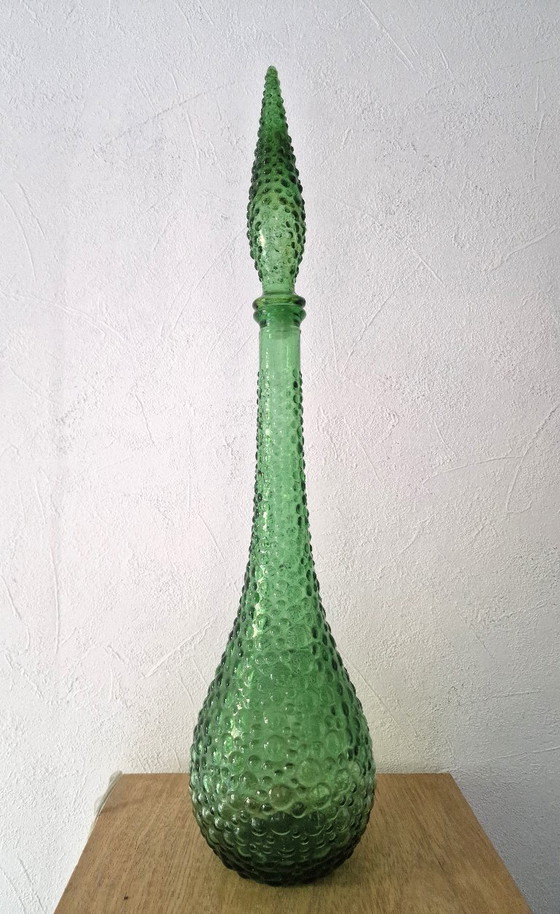 Große Karaffenflasche aus italienischem Blasenglas (Empoli) aus den 60er Jahren.