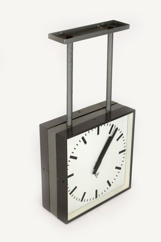 Große, doppelseitige Eisenbahnuhr von Pragotron, 1980er Jahre
