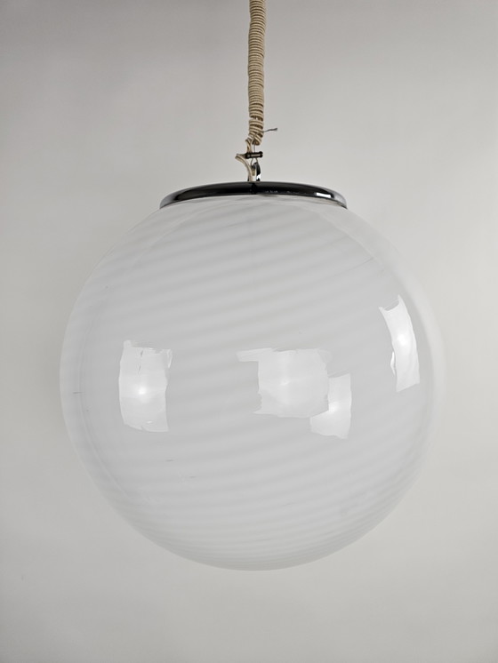 Große Glaspendelleuchte mit Wirbeleffekt aus Italien, Durchmesser 45 cm