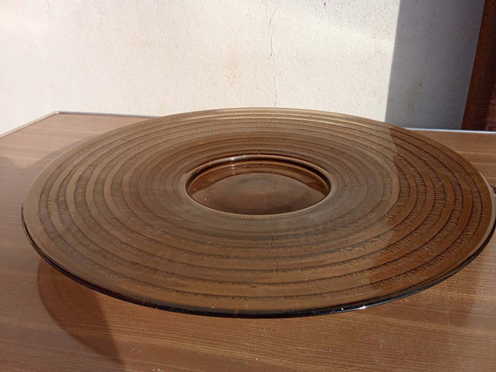 Große runde Platte aus Rauchglas – konzentrisches Muster