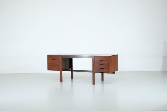 Wunderschöner Canaan-Schreibtisch, entworfen von Marcel Breuer für Gavina in den 1960er Jahren. Sein schlichtes und praktisches Design spiegelt den Ansatz von Marcel Breuer perfekt wider. Der Schreibtisch verfügt über zahlreiche Stauräume, darunter zwei unterschiedlich große Schubladen auf der linken Seite und vier gleich große Schubladen auf der rechten Seite.