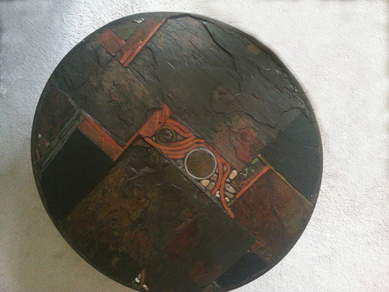 Großer runder brutalistischer Couchtisch auf einem Fuß aus Schwarzblech von Paul Kingma