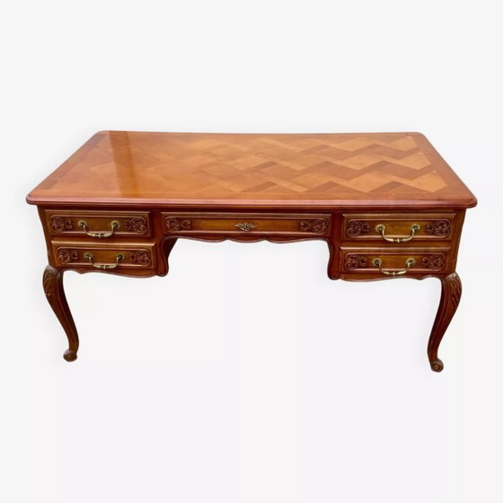 Entdecken Sie diesen prachtvollen Schreibtisch im Stil Louis XV., ein Prunkstück, das Ihrem Arbeitsbereich zeitlose Eleganz verleiht. Mit außergewöhnlicher Handwerkskunst gefertigt, ist dieser Schreibtisch ein perfektes Beispiel klassischer französischer Handwerkskunst.