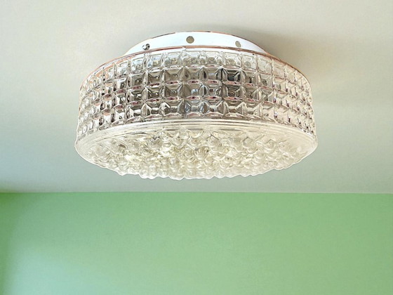 Unterputzleuchte im Vintage-Stil für Wand oder Decke. Hergestellt aus klarem Glas und weiß lackiertem Aluminiumsockel. Ausgestattet mit einer E27 Glühbirnenfassung.