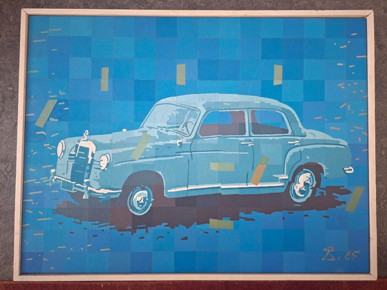 Großformatiges Gemälde von J (Sjef) Toby – Mercedes 180 – Pop-Art-Auto von 1985