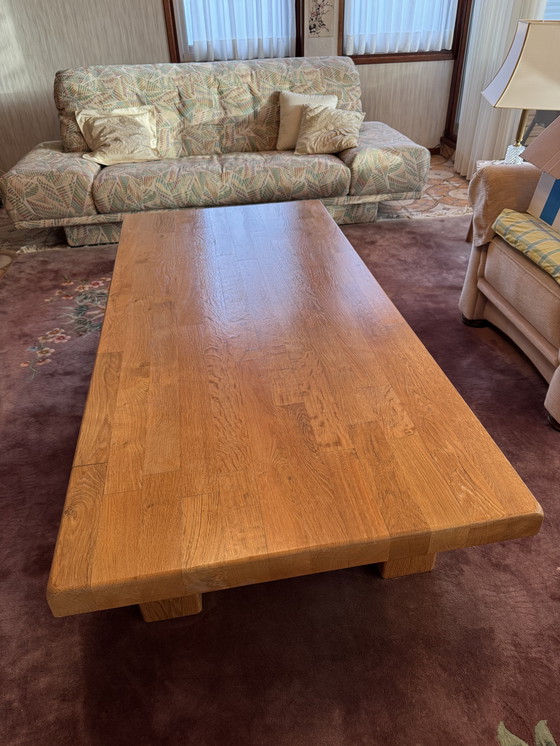 Grote massief eikenhouten salontafel Oisterwijk (Brutalistisch)