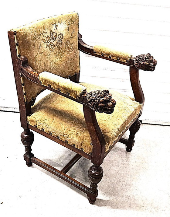 schöne Schnitzerei mit Löwenköpfen in den Armlehnen, ca, 1900.