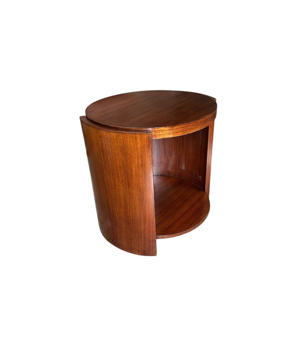 Dieser exquisite Art-déco-Beistelltisch aus edlem Palisanderholz verkörpert die Eleganz und Raffinesse des frühen 20. Jahrhunderts. Seine sanft gerundete Form und der warme Braunton machen ihn zu einer vielseitigen Bereicherung für jedes stilvolle Interieur.