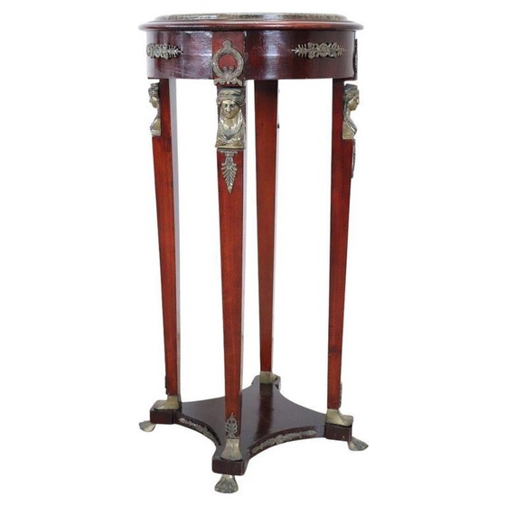 Guéridon aus Holz im Empire-Stil mit Bronze- und Marmorplatte