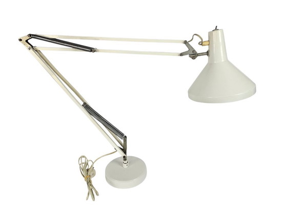 Diese wunderschöne Hala Zeist Architektenleuchte, entworfen von Busquet in den 1960er Jahren, ist ein Paradebeispiel für Mid-Century-Modern-Design. Die Leuchte in elegantem Cremeweiß verleiht jedem Raum zeitlose Eleganz.