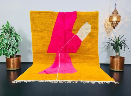 Tauchen Sie ein in die lebendige Faszination marokkanischer Handwerkskunst mit diesem exquisiten, handgeknüpften Wollteppich. Mit seinen beeindruckenden Maßen von 300 x 200 cm ist dieses Stück ein Zeugnis traditioneller Kunstfertigkeit und modernem Designverständnis.