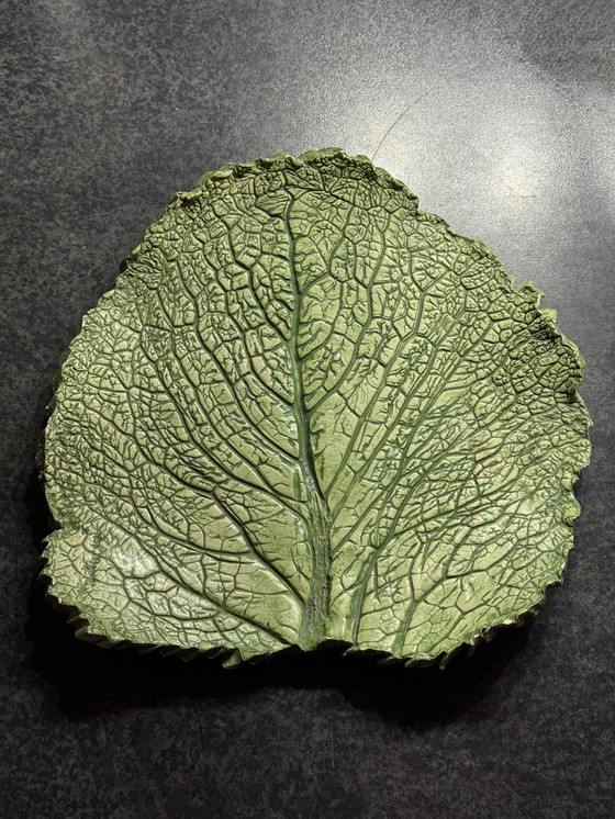 Er ähnelt den bekannten Kohlschalen aus Bordallo Pinheiro, ist jedoch ein unmarkiertes, handgefertigtes Einzelstück. Wunderschön als dekorativer Teller oder Schale auf Tisch, Couchtisch oder Sideboard, für Kerzen, Schmuck oder als natürlicher Akzent in Ihrer Einrichtung. Auch als Dekorationsobjekt in der Küche oder als Wanddekoration mit einem Tellerhalter macht er sich hervorragend.