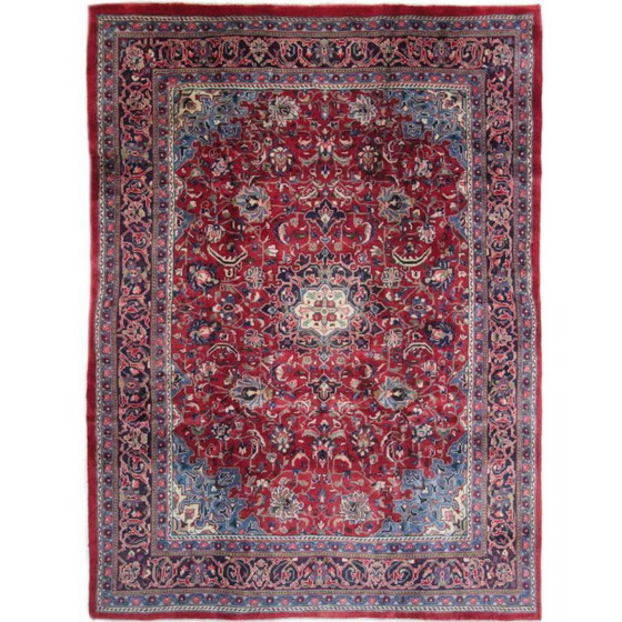 Handgeknüpfter Perserteppich Mahal Nr 2193 Der Mahal-Teppich stammt aus der westpersischen Region Arak, die für ihre traditionsreiche Teppichknüpfkunst bekannt ist. Diese Teppiche sind handgeknüpft und zeichnen sich durch eine hohe Qualität, natürliche Materialien und harmonische Muster aus. Herkunft: Mahal (Region Arak, Persien/Iran) Knüpfung: Handgeknüpft, meist aus hochwertiger Schurwolle auf Baumwollkette Flor: Reine Wolle, teils mit natürlichem Glanz Farben: Typisch warme Rottöne, gedecktes Blau, Beige und Elfenbein – durch Pflanzenfarben oder traditionelle Färbemethoden Muster: Große, oft florale Ornamente, stilisierte Ranken und Medaillons; insgesamt etwas großzügiger und lockerer gezeichnet als bei feineren Perserteppichen Qualität: Dichte und robuste Knüpfung, langlebig und strapazierfähig – ideal sowohl für Wohnräume als auch als Sammlerstück Mahal-Teppiche vereinen rustikalen Charme mit zeitloser Eleganz. Sie gelten als sehr dekorativ und sind für ihre ausgewogene Balance zwischen Farbigkeit, Muster und Bodenständigkeit geschätzt.