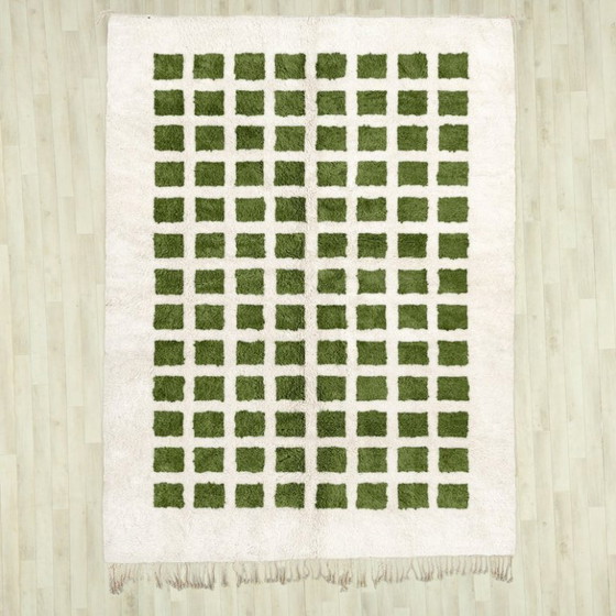 Verschönern Sie Ihr Zuhause mit diesem exquisiten, handgewebten, grün-weiß karierten Wollteppich (3 x 2 Meter). Mit Präzision und Sorgfalt gefertigt, zeugt dieser Teppich von der zeitlosen Schönheit traditioneller Handwerkskunst.