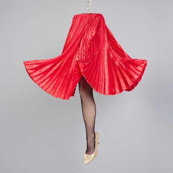 Erleben Sie den einzigartigen Charme der Pendelleuchte „Minimum Design“ von Alexandra Tsoukala. Diese markante Leuchte vereint verspielte Eleganz mit moderner Ästhetik und wird so zum Blickfang in jedem Raum. Der Lampenschirm in Form eines fließenden roten Rocks verleiht Ihrem Interieur eine heitere Note, während der goldene Absatz und der schwarze Netzstrumpf für Glamour und Raffinesse sorgen.