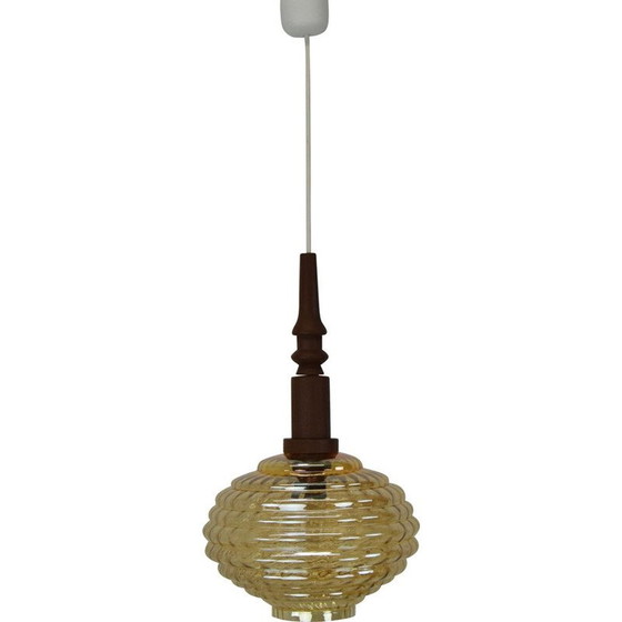Hängeleuchte aus Glas und Holz, Tschechoslowakei 1960