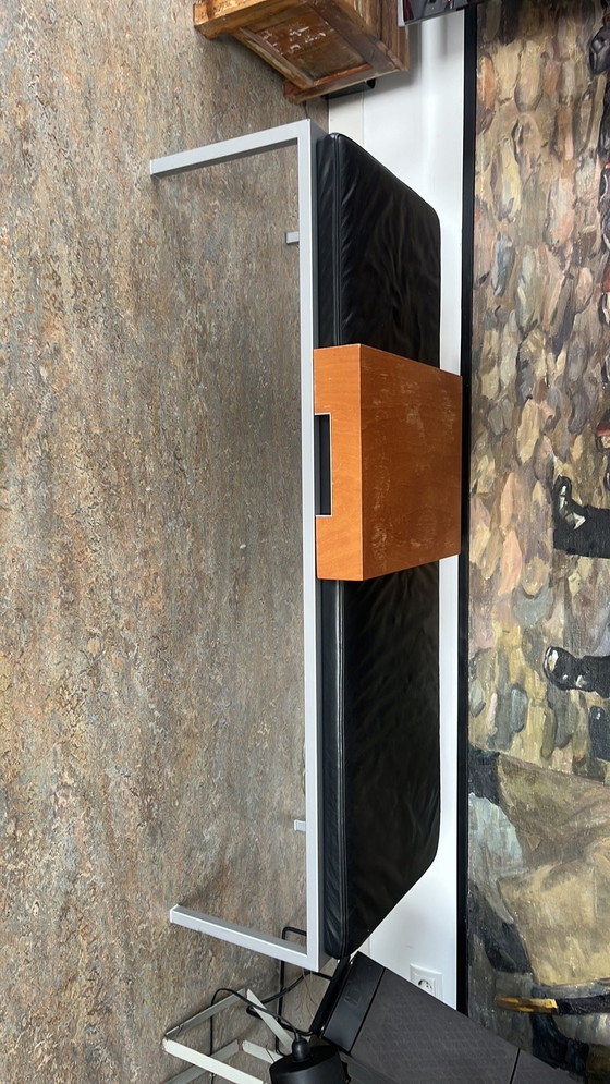 Harvink Sofabank, schwarzes Leder, Metall und Holz