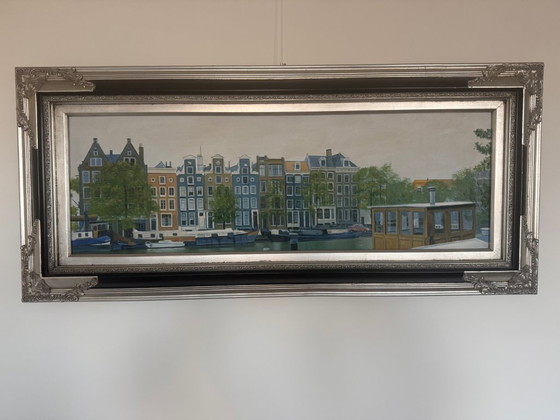 Wunderschönes Panoramabild auf Leinwand mit Grachtenhäusern in einem ansprechenden Rahmen. Die Leinwand misst 30 cm x 60 cm, der Rahmen 111 cm x 50 cm.