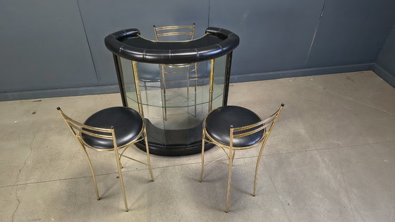Hollywood-Regency-Bar mit drei Barhockern, 1970er Jahre – Italien