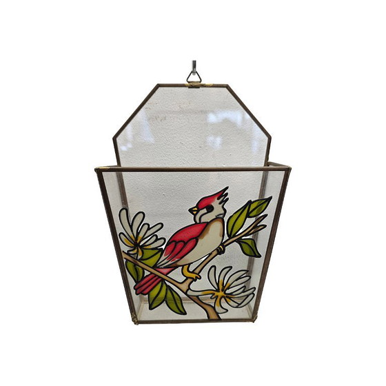 Dieser Wandbriefhalter im Hollywood Regency-Stil ist ein beeindruckendes Beispiel für den raffinierten Stil der 1970er Jahre. Das Design kombiniert elegant Glas und Messing mit einem wunderschönen handgemalten Vogel als Blickfang.