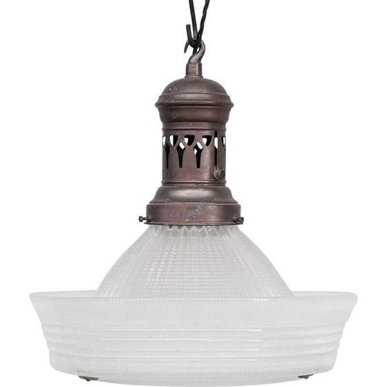 Eine große Holophan-Pendelleuchte von ungewöhnlicher Form - fast ein "Matrosenhut".