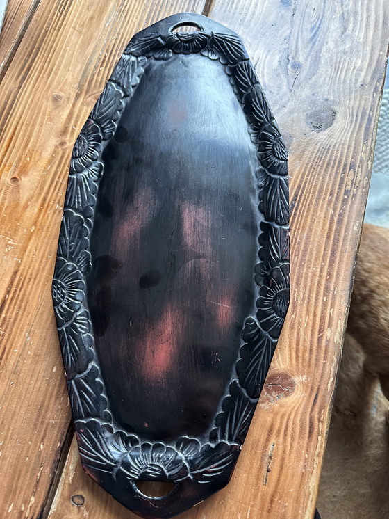 Dieses exquisite Holztablett von I.c. Nieuwenhuis zeugt von zeitloser Handwerkskunst und Eleganz. Seine tiefschwarze Lackierung und die filigranen floralen Schnitzereien machen es zu einer markanten Bereicherung für jede Einrichtung und eignen sich sowohl zum Präsentieren als auch für den praktischen Gebrauch. Mit einer Länge von ca. 40 cm und einer Breite von ca. 20 cm bietet dieses Tablett viel Platz zum Servieren oder Präsentieren von Dekorationsgegenständen. Der Vintage-Charme dieses Stücks wird durch seine dezenten Gebrauchsspuren unterstrichen, die ihm Charakter und Geschichte verleihen. Bereichern Sie Ihr Zuhause mit diesem einzigartigen und edlen Tablett – ein wahres Sammlerstück.