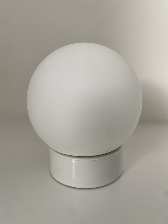 Die Classic Globe der schwedischen Marke Ifö Electric ist eine elegante Wand-/Deckenleuchte mit rundem, kugelförmigem Schirm und hochwertigem Porzellanfuß. Das minimalistische Design sorgt für eine sanfte, gleichmäßige Lichtverteilung.