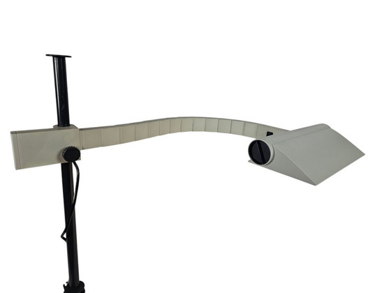 Pharos Schreibtisch-/Klemmleuchte mit flexiblem „Schlangenarm“. Ein Entwurf von Willem ter Kuile für Indoor Amsterdam. Dank der einzigartigen „Wirbelsäulen“-Konstruktion des Arms ist die Lampe sehr flexibel und in jede gewünschte Position verstellbar. Dies machte sie bei Ingenieuren und technischen Zeichnern beliebt. Der Lampenschirm verfügt über einen verstellbaren Diffusor. Diese Lampe gilt als Designklassiker.