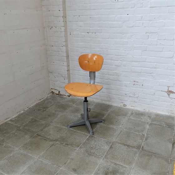 Brevets-Fabrikstuhl. Ein französischer Klassiker der Fabrikmöbel aus der Mitte des 20. Jahrhunderts. Höhe und Rückenlehne sind stufenlos verstellbar. Höchster Komfort!