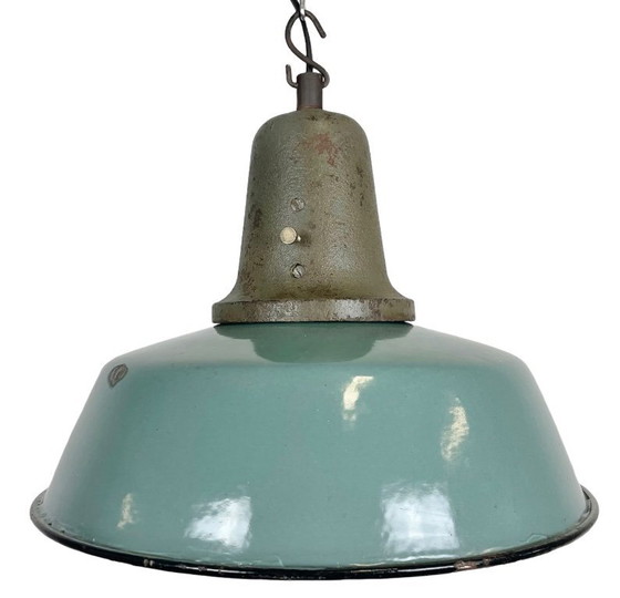 Industrielle Fabriklampe mit emaillierten Produkten und gusseisernem Aufsatz, 1960er Jahre