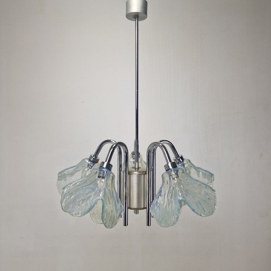 Italienische Deckenleuchte mit fünf blauen Lampenschirmen aus Muranoglas - 1970er Jahre