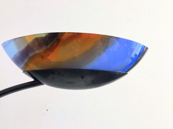Italienische Halogen Stehleuchte Bogenleuchte Muranoglasschirm von Missoni 80er