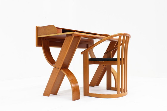 Italienischer Holzschreibtisch und Stuhl 1970er Jahre