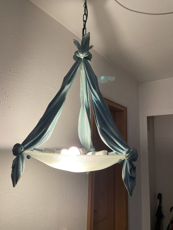 Italienischer Kronleuchter Aus Geschnitztem Holz Und Muranoglas