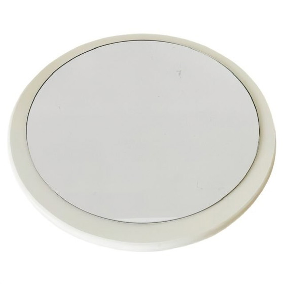Was für ein Schmuckstück! Dieser italienische Mid-Century-Spiegel aus weißem Holz im Space-Age-Stil ist ein echter Hingucker. Der Retro-Spiegel ist in sehr gutem Vintage-Zustand. Der runde Spiegel hat einen Durchmesser von 42 cm und ist 2 cm tief.